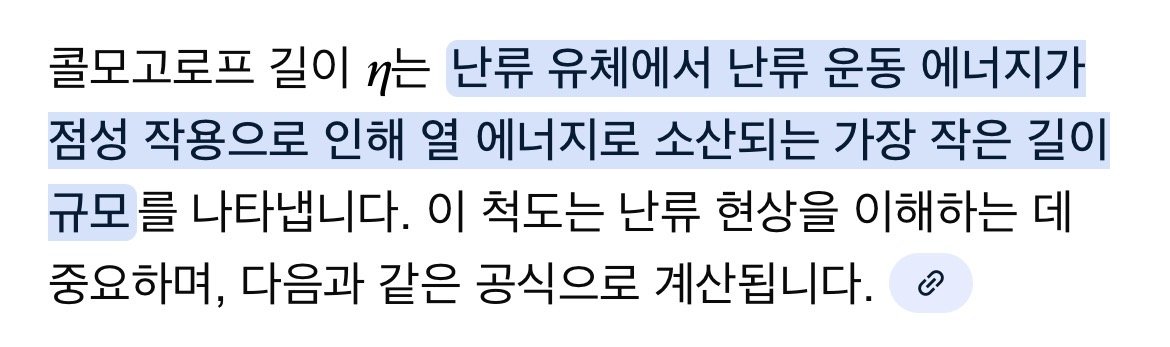 고유의 콜모고로프 길이 η 를 가지고 있다는 점을 고려하여