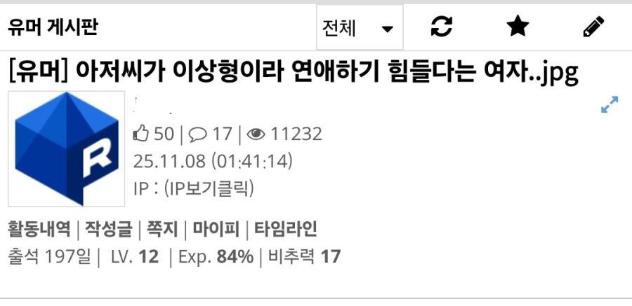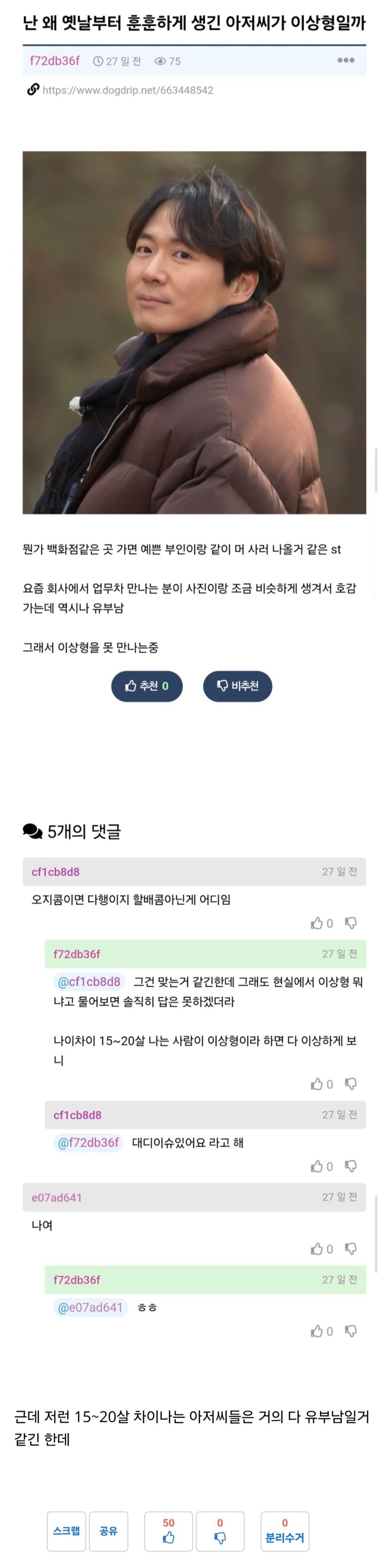 아저씨가 이상형이라 연애하기 힘들다는 여자