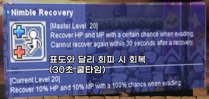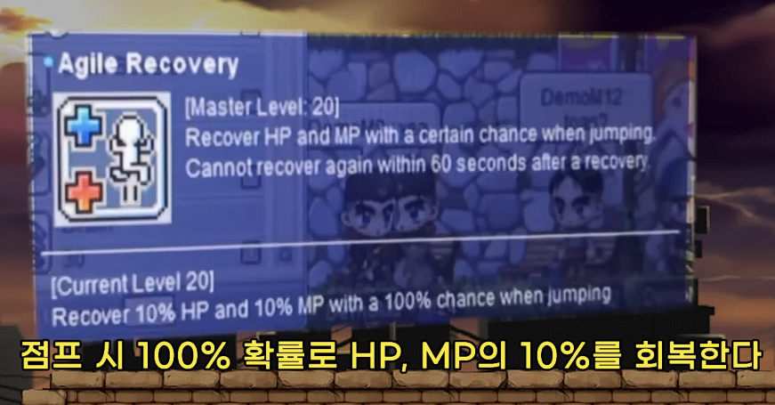 -점프시 100퍼 확률로 체력, 마나 10퍼 회복. 60초 쿨타임