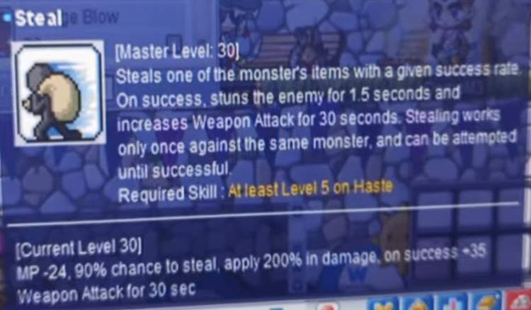 - 변경 : 성공시 적 1.5초 기절, 30초 동안 무기 공격력 증가. 같은 적한테 한번만 훔치기 가능. 성공시까지 시도가능.