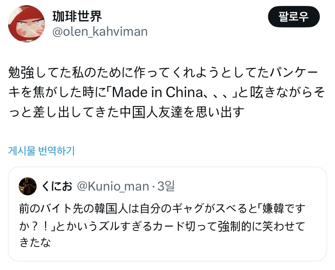 한국인한테 혐한이냐는 소리 들은 일본인