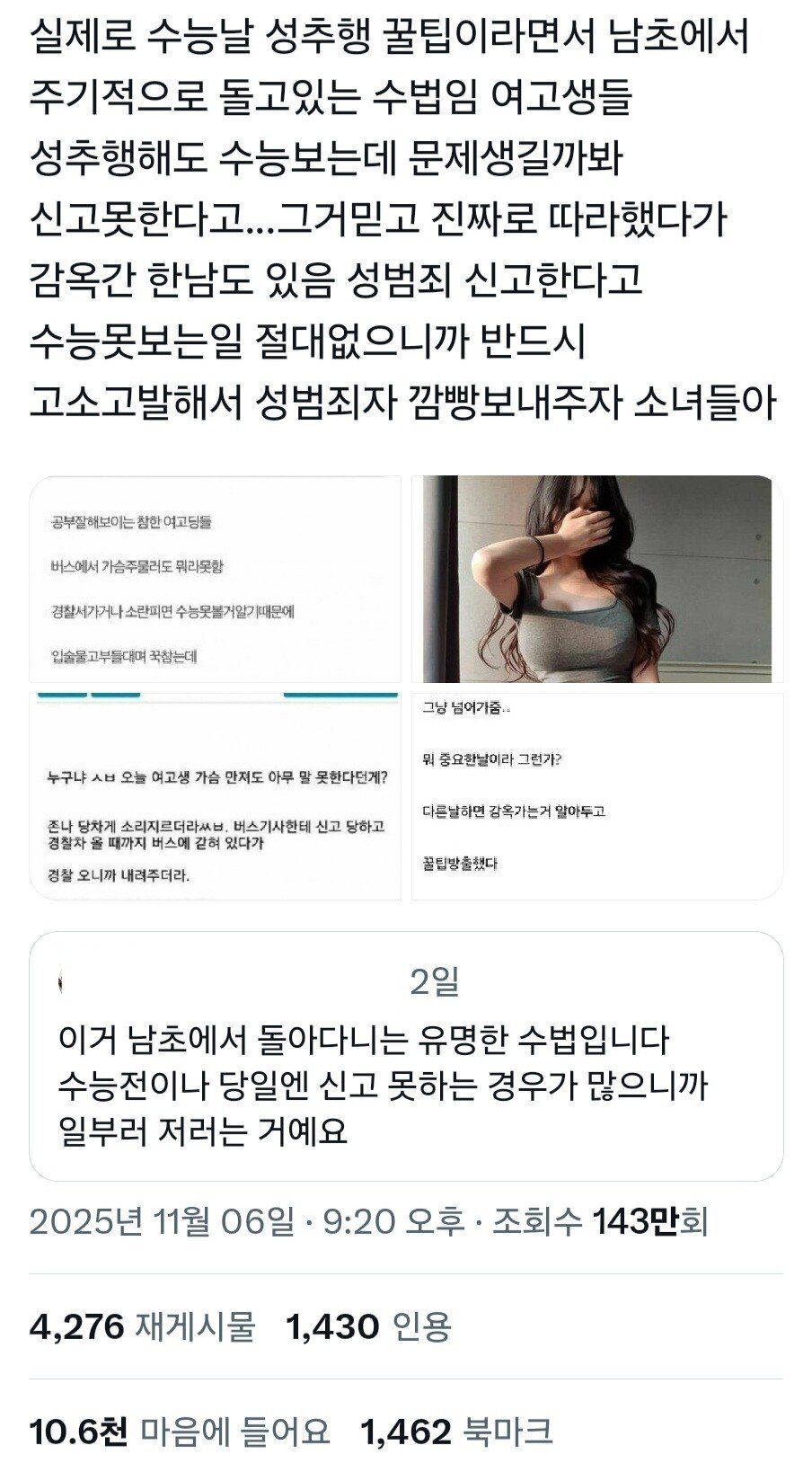 남초에서 돌아다닌다는 수능날 성추행 꿀팁