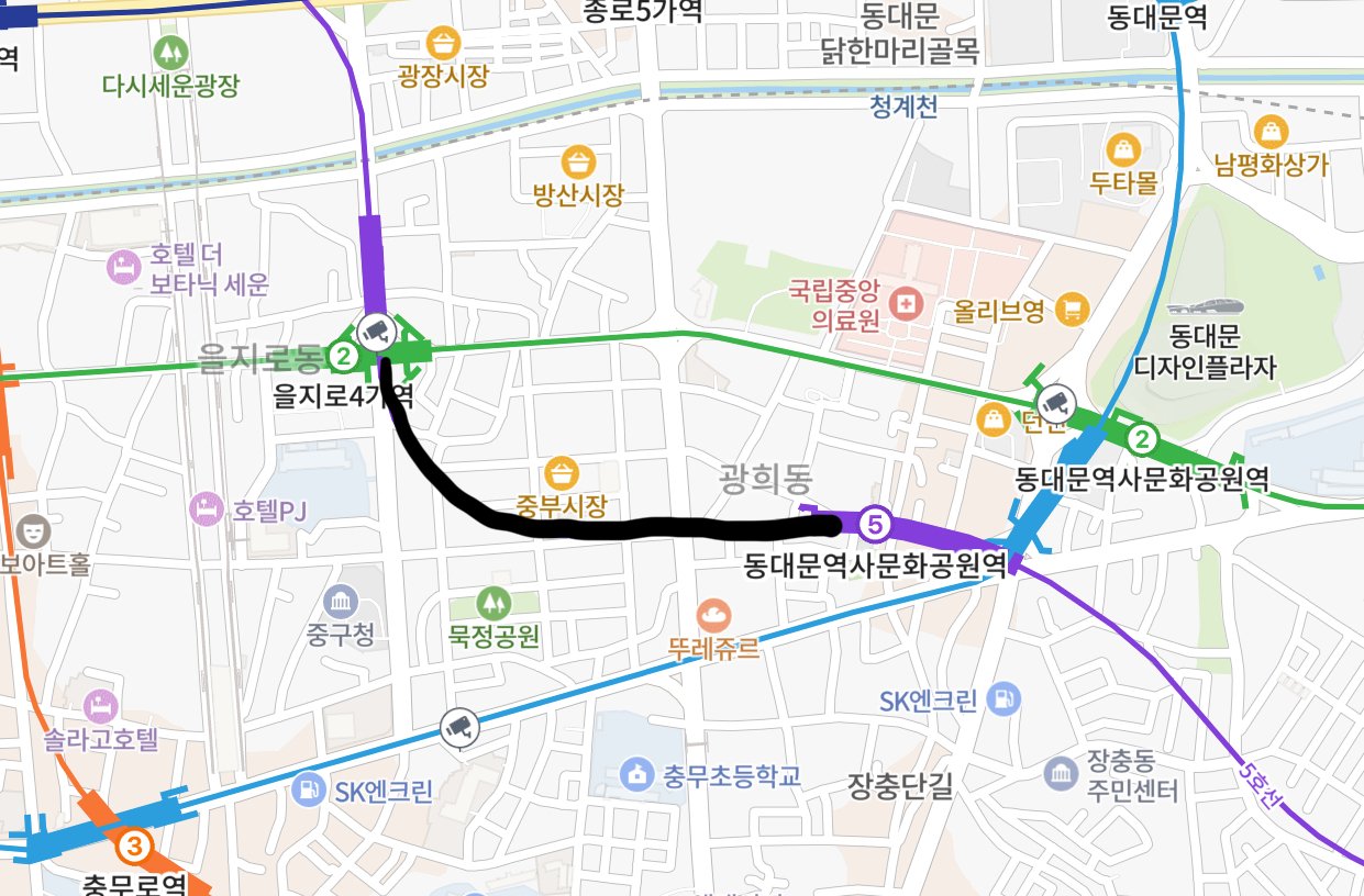 종로3가-을지로4가-ddp 모두 45km/h 곡선 제한이 있다.