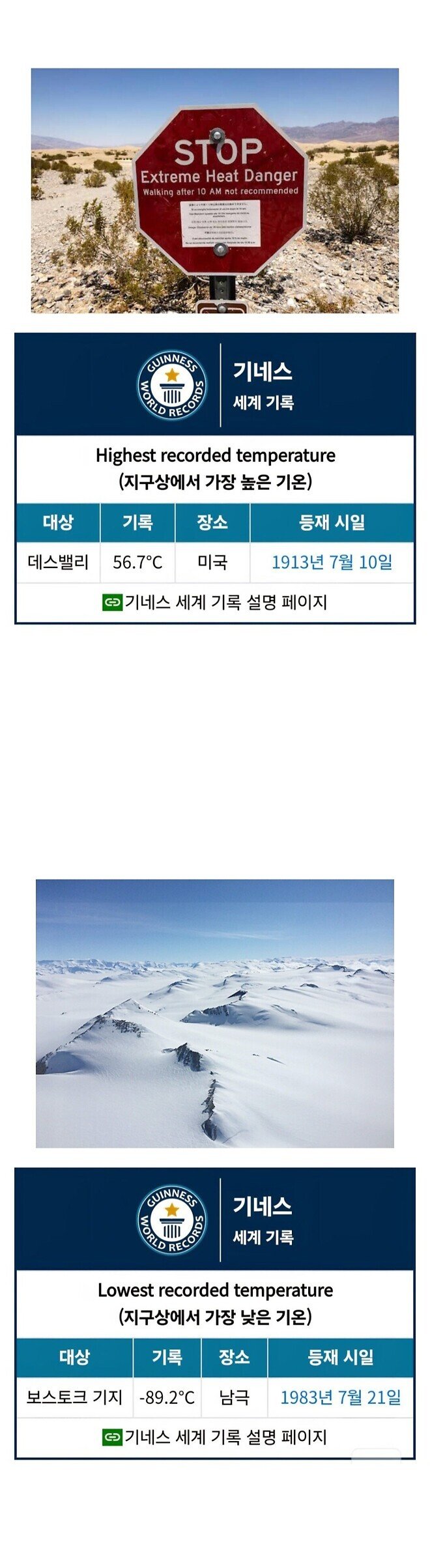 지구상에서 가장 높은 기온 vs 가장 낮은 기온