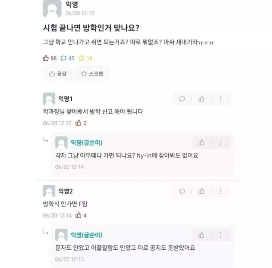 방학식 안가면 F 당한다는 새내기