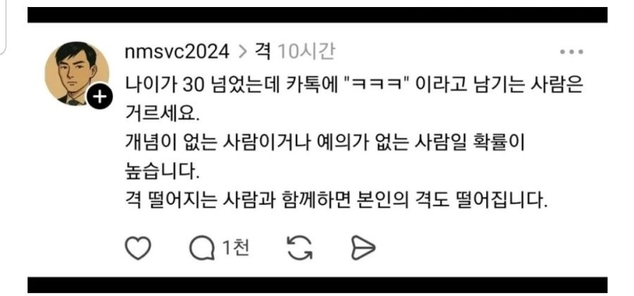 나이 30에 "ㅋㅋㅋ"쓰는 사람 거르세요