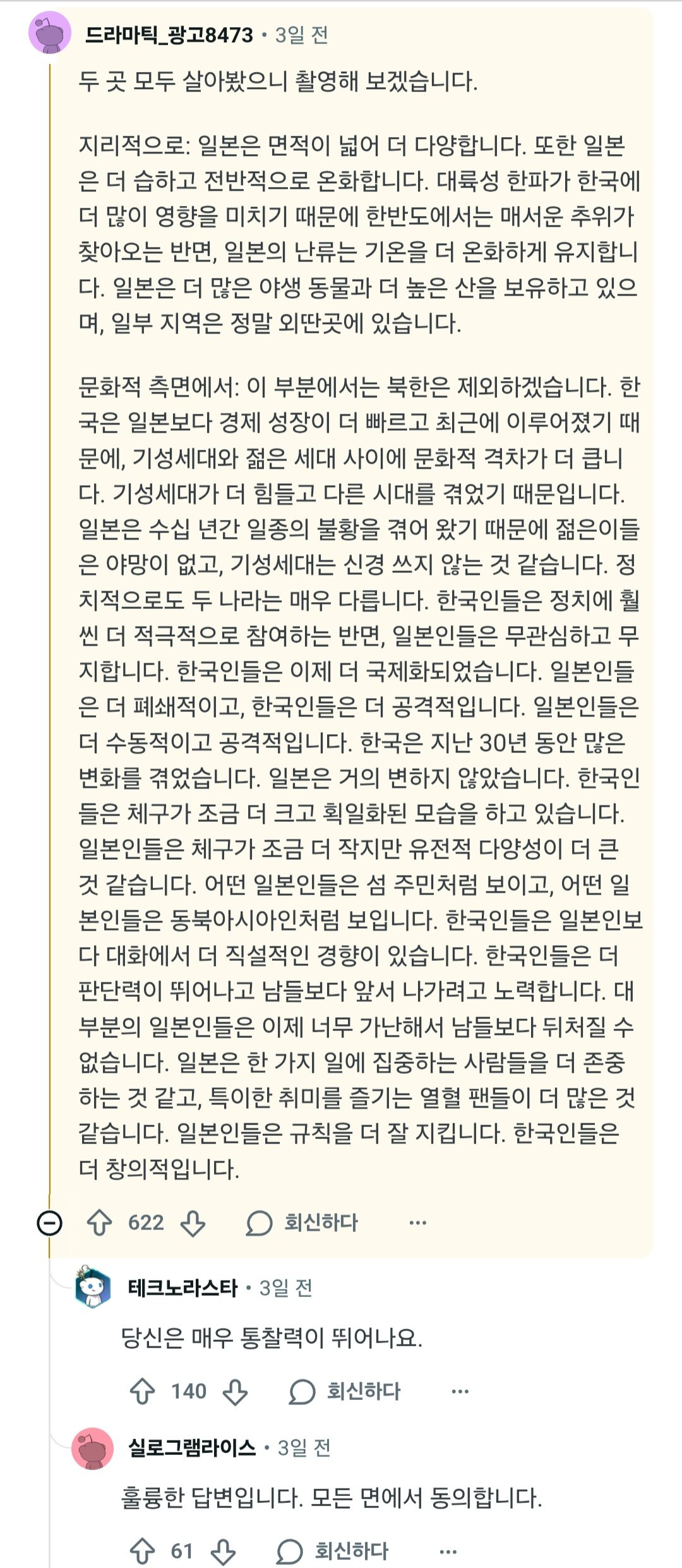 레딧) 외국인이 느끼는 한국인과 일본인의 차이점 추천글
